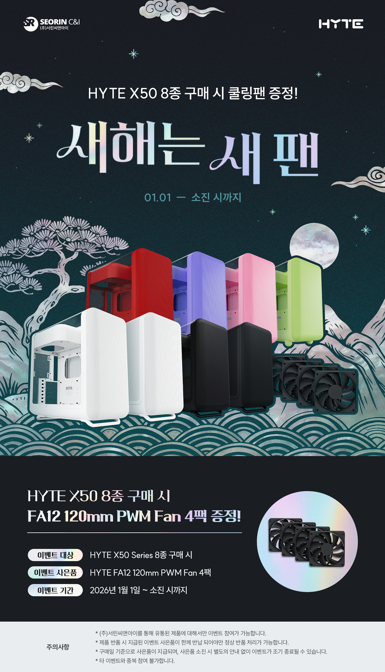 NOTICE [서린씨앤아이] HYTE X50 8종 구매 시 쿨링팬 증정! 운영자 [이벤트 진행중] 2026-01-06 ~ 2027-01-01