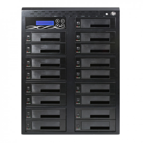 이지넷유비쿼터스 NEXT-DC3016TS HDD 복사기 / SATA / 6.4cm(2.5인치) / 8.9cm(3.5인치) / 최대복사 가능:16대 / 분당 18GB / 단독 구동 / LCD / 가로 삽입 타입