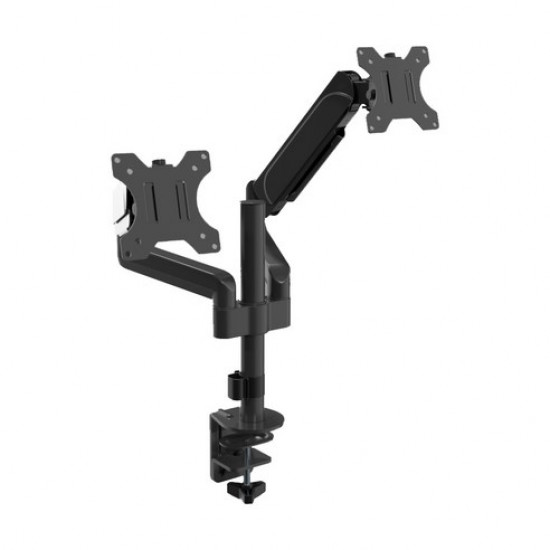 모니터 암 / 2대 / VESA홀:75 x 75mm,100 x 100mm / 피벗(회전) / 엘리베이션(높낮이) / 틸트(상하) / 스위블(좌우) / 가스스프링 / 지원 크기:13~32형 / 지원 무게:1~9kg / 클램프 / 그로밋(홀) / 클램프 두께:10~85mm / 그로밋(홀) 두께:10~40mm / 케이블정리