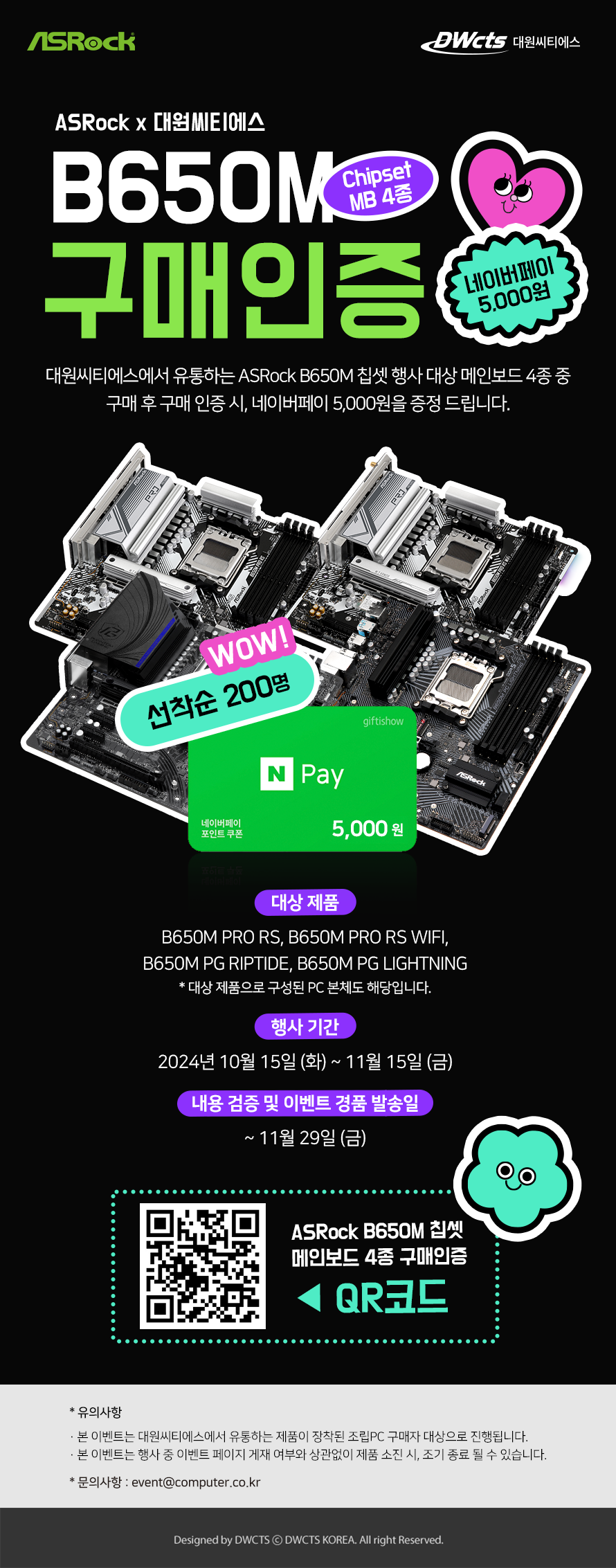 NOTICE B650M 메인보드 4종 이벤트 운영자 [이벤트 종료] 2024-10-15 ~ 2024-11-15
