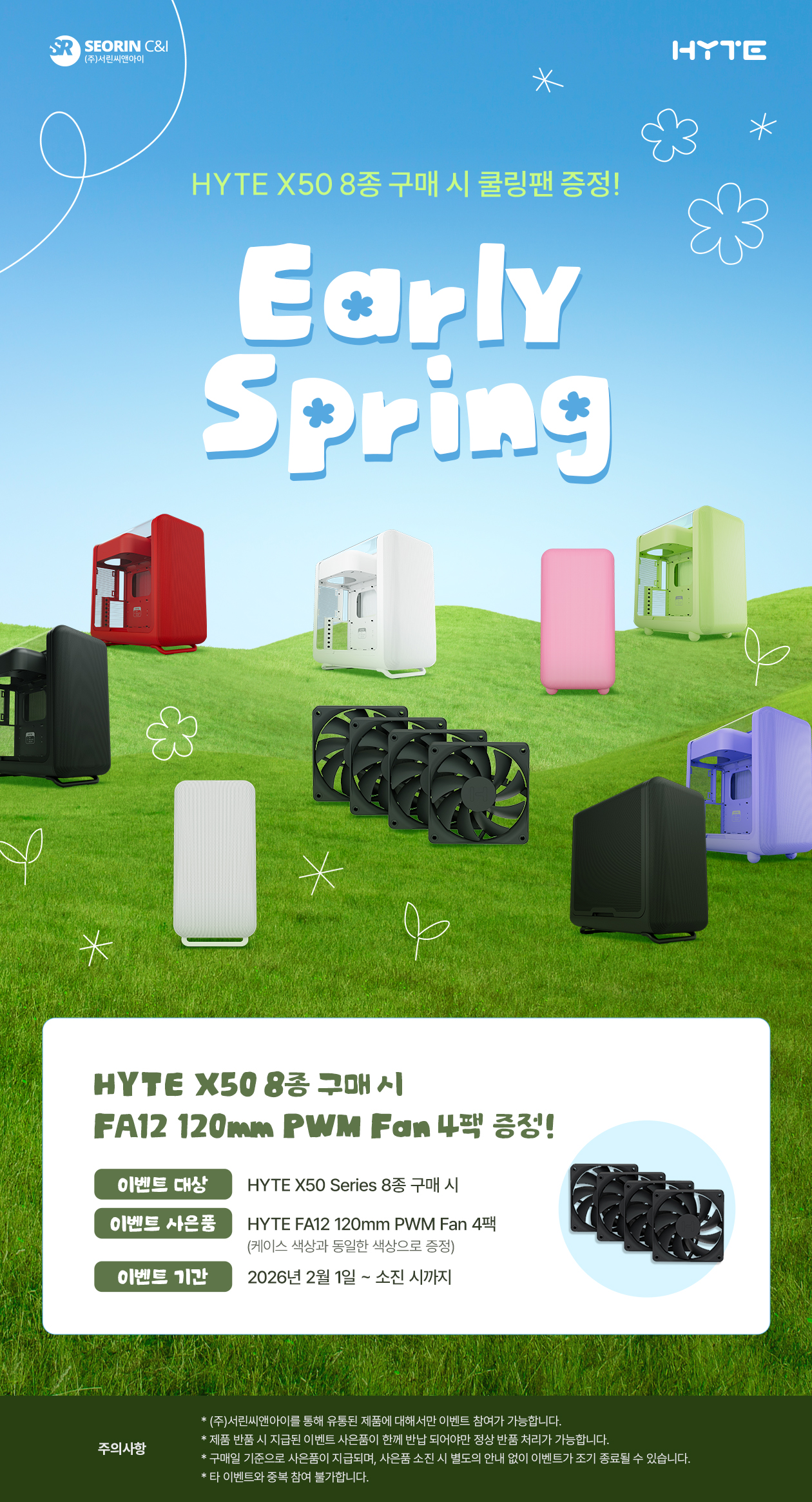 NOTICE [서린씨앤아이] HYTE X50 8종 구매 시 쿨링팬 증정! 운영자 [이벤트 진행중] 2026-01-06 ~ 2027-01-01